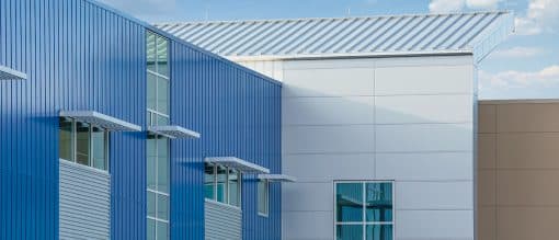 The original Precision Series HWP profile features a 7/8” depth, while the Precision Series Highline profiles are 1-3/8” deep, and can be intermixed to add visual intensity to a building’s exterior. Precision Series wall panels can be installed horizontally or vertically. Consult Petersen rep for maximum length; minimum panel length is 4’. Additionally, these wall panels can be specified as perforated in aluminum only for use in equipment screen applications or over graphics.